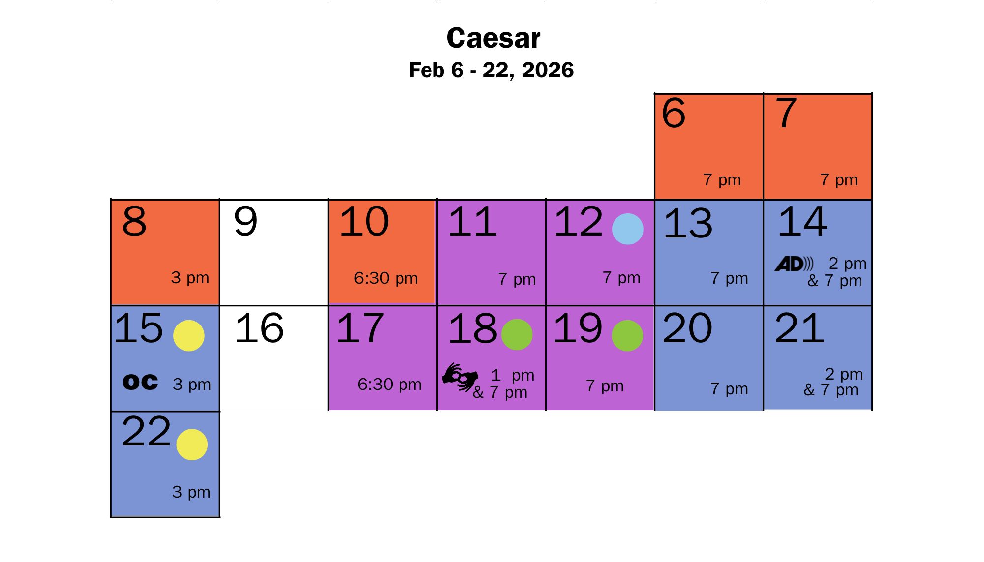 Running just 95 minutes, Caesar is fast-paced and fiercely relevant, inviting audiences to draw parallels between ancient Rome and the political tensions of our world today.